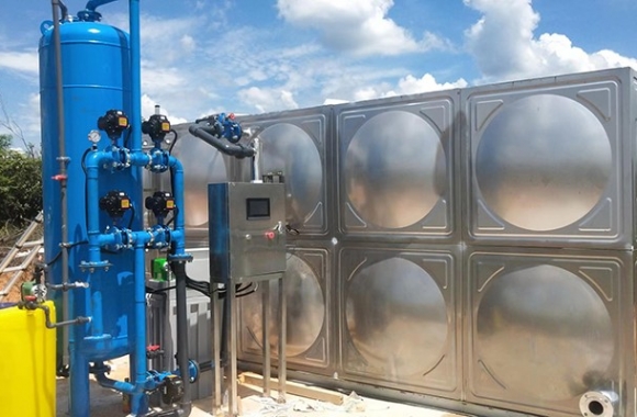 工藝流程:地下水-絮凝加藥-石英砂過濾器-二氧化氯消毒-水箱